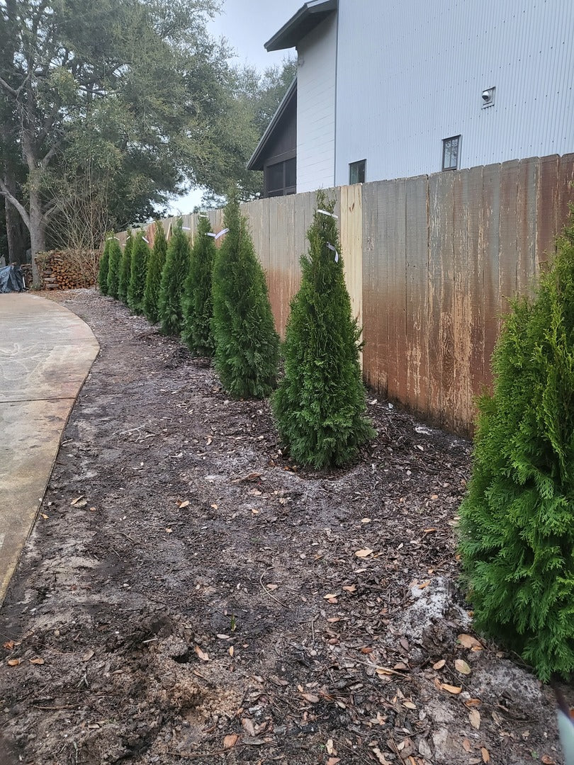 We added 4 emerald green arborvitaes to the 6 we bought last year. The items came when we wanted them and now we can see how much last years trees have grown.